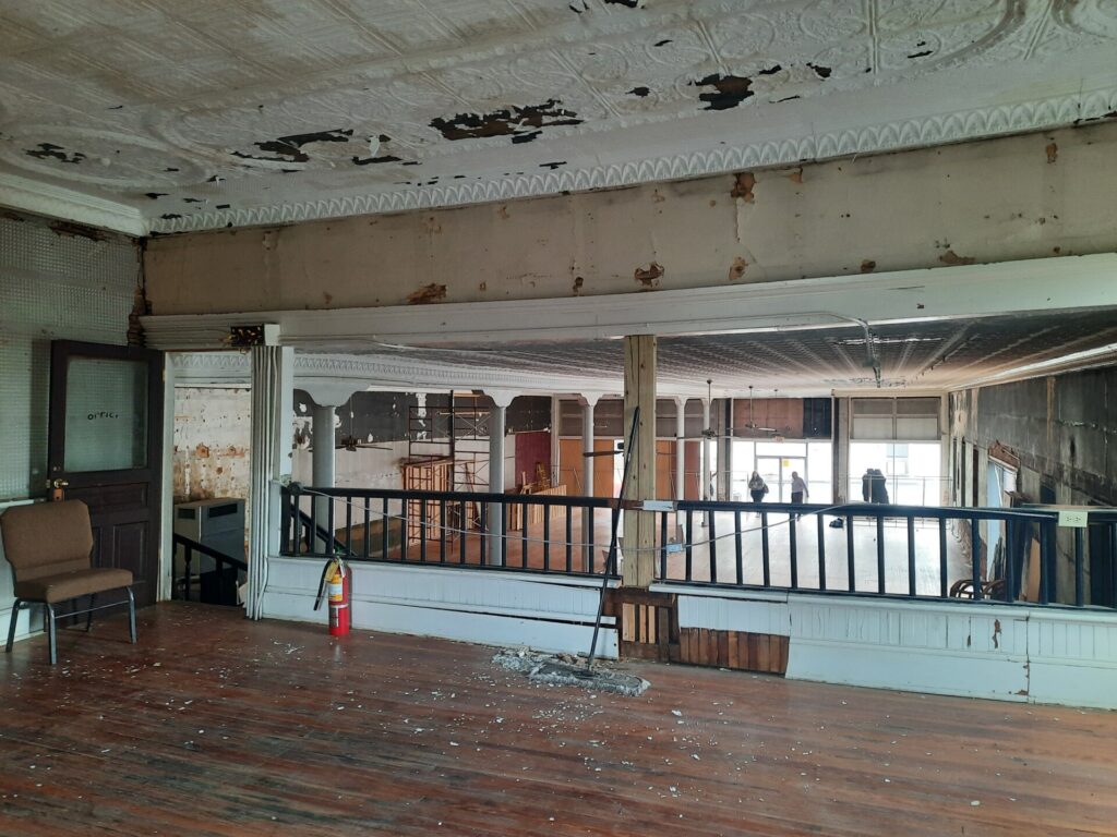 The first stage will be to renovate the main floor and mezzanine for retail, gallery, meeting room, offices, and other spaces. The second stage will be to convert the lower level into classroom and rental spaces, followed by the total renovation of the third floor, which will become a performance hall. This plan is expected to take three to five years to complete